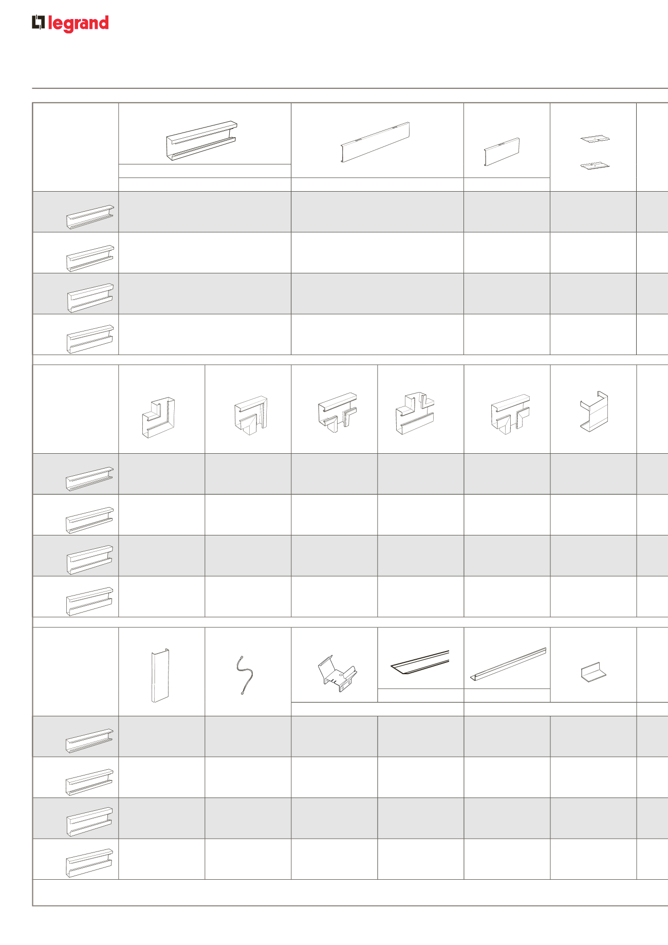 1 : All trunking body lengths supplied in packs of 2 x 3 m lengths except Cat. No. MP351236 which is supplied singly 2 : Internal components supplied unpainted